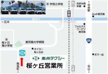 | 地図 | 勤務地はこちらです。 株式会社南州タクシー桜ケ丘営業所 |